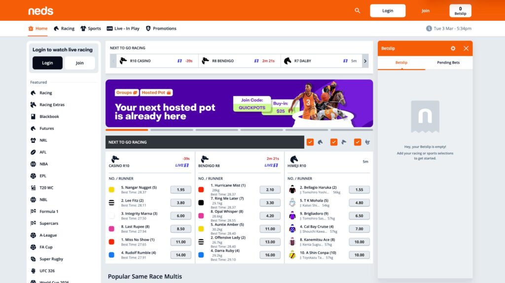 Neds is one of the newer betting operators in Australia and they definitely don’t disappoint, with Neds.com.au having an outstanding product called the ToolBox, which gives new customers a swag of cool promotions and features. Neds has a strong coverage of both Australian sports betting markets and events from overseas, with racing definitely a big part of their business plan. Neds review.