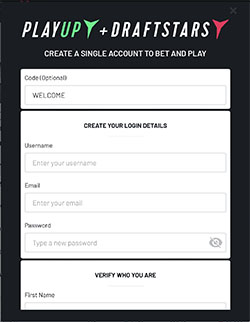 Registering at PlayUp + Draftstars is straight-forward and involves filling in a digital form, like the above image, with things like your name, email, address and a password.